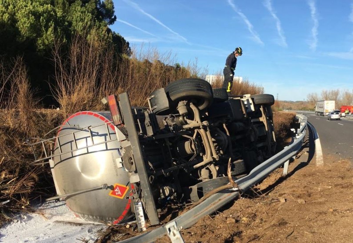 Un camión cisterna que transportaba leche ha volcado este mediodía en el kilómetro 156 de la autovía A-62 a la altura de la localidad vallisoletana de Tordesillas, según informa el 1-1-2 a Europa Press.