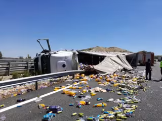 Un trailer que transportaba bebidas ha volcado pasadas las 15.00 horas de este miércoles en el kilómetro 143 de la A-2, cerca de Esteras de Medinaceli, en la provincia de Soria en sentido Zaragoza.
