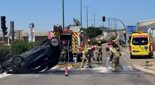 Accidente vial con un turismo volcado en la avenida de Zamora de Valladolid. - EUROPA PRESS