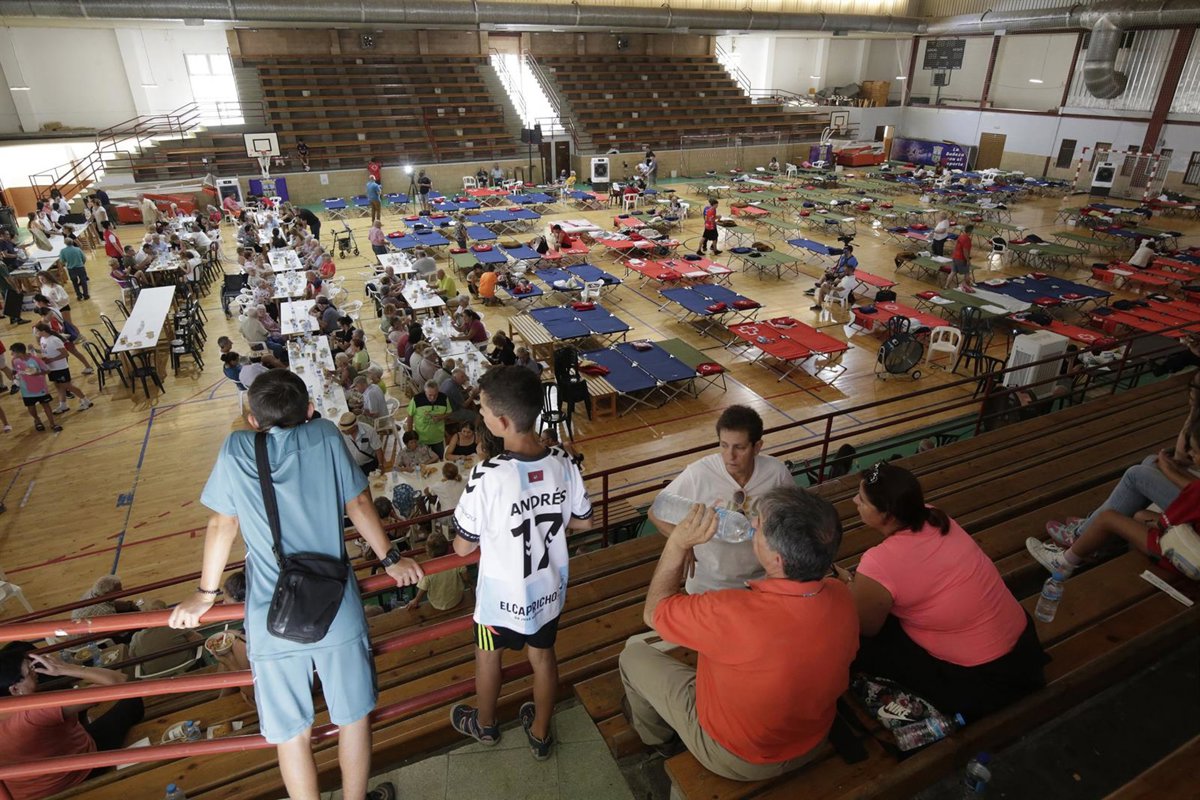Varias personas evacuadas, en el pabellón municipal de La Bañeza, a 13 de agosto de 2025, en La Bañeza, León, Castilla y León (España). - Fernando Otero - Europa Press