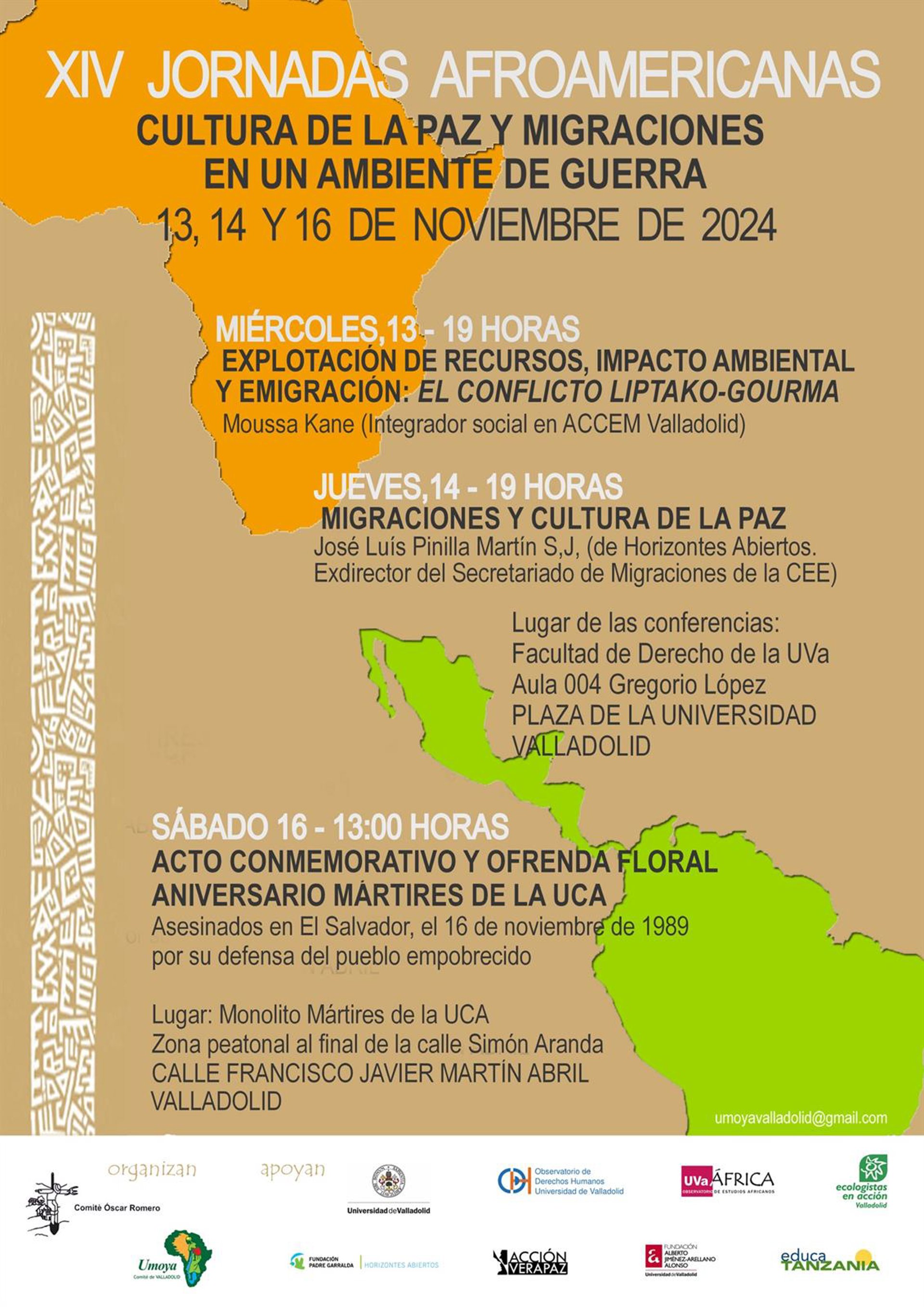 Con el título 'Cultura de la paz y migraciones en un ambiente de guerra', se tratan de unas jornadas organizadas por el Comité de Solidaridad con África Negra de Valladolid y el Comité de Solidaridad con América Latina Óscar Romero de la misma localidad, en un encuentro que incluye la presentación de la Agenda Latinoamericana Mundial 2025.