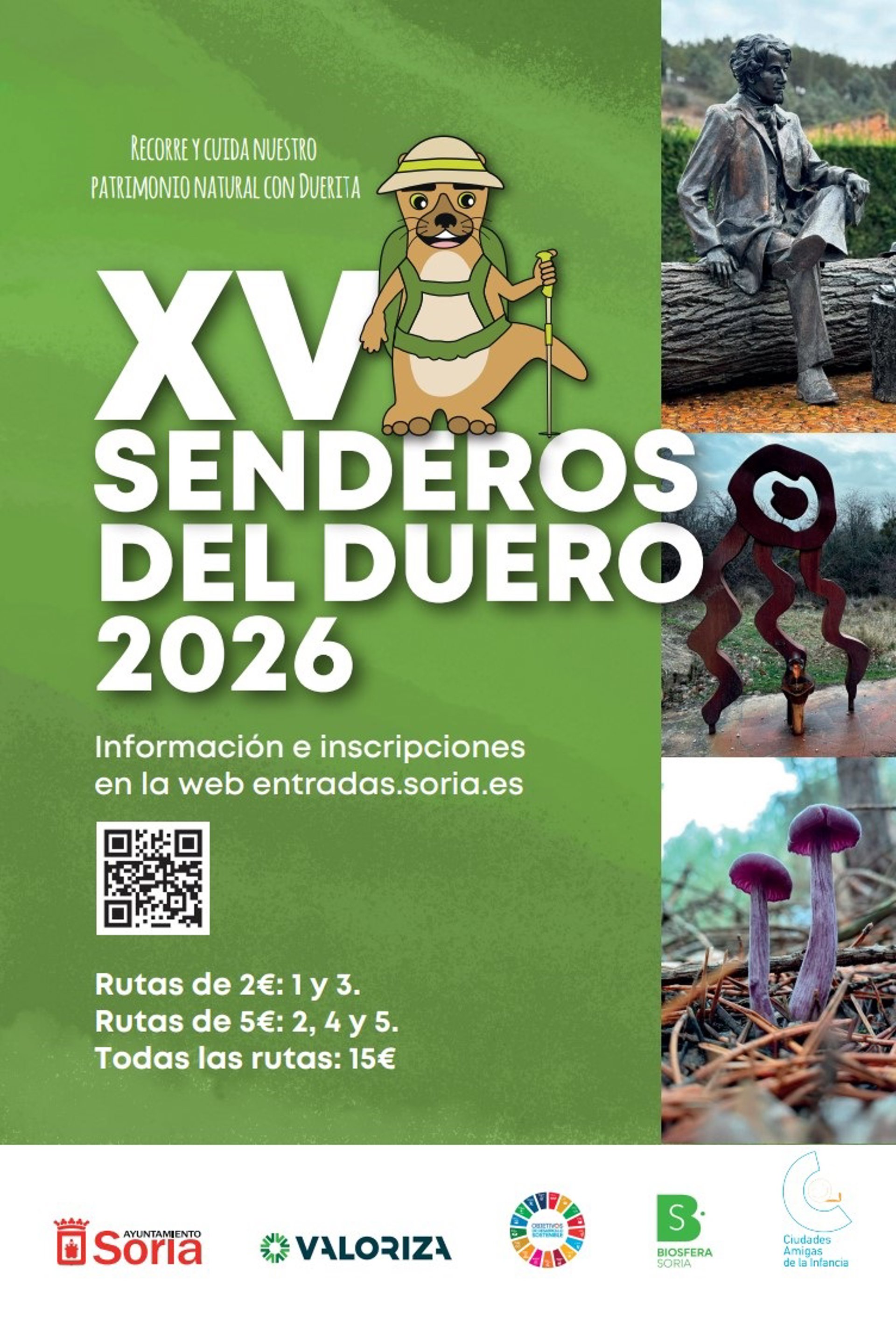Las plazas para participar en los 'Senderos del Duero 2026' son limitadas y la información detallada de cada ruta, horarios y las inscripciones estarán disponibles en la web municipal entradas.soria.es.