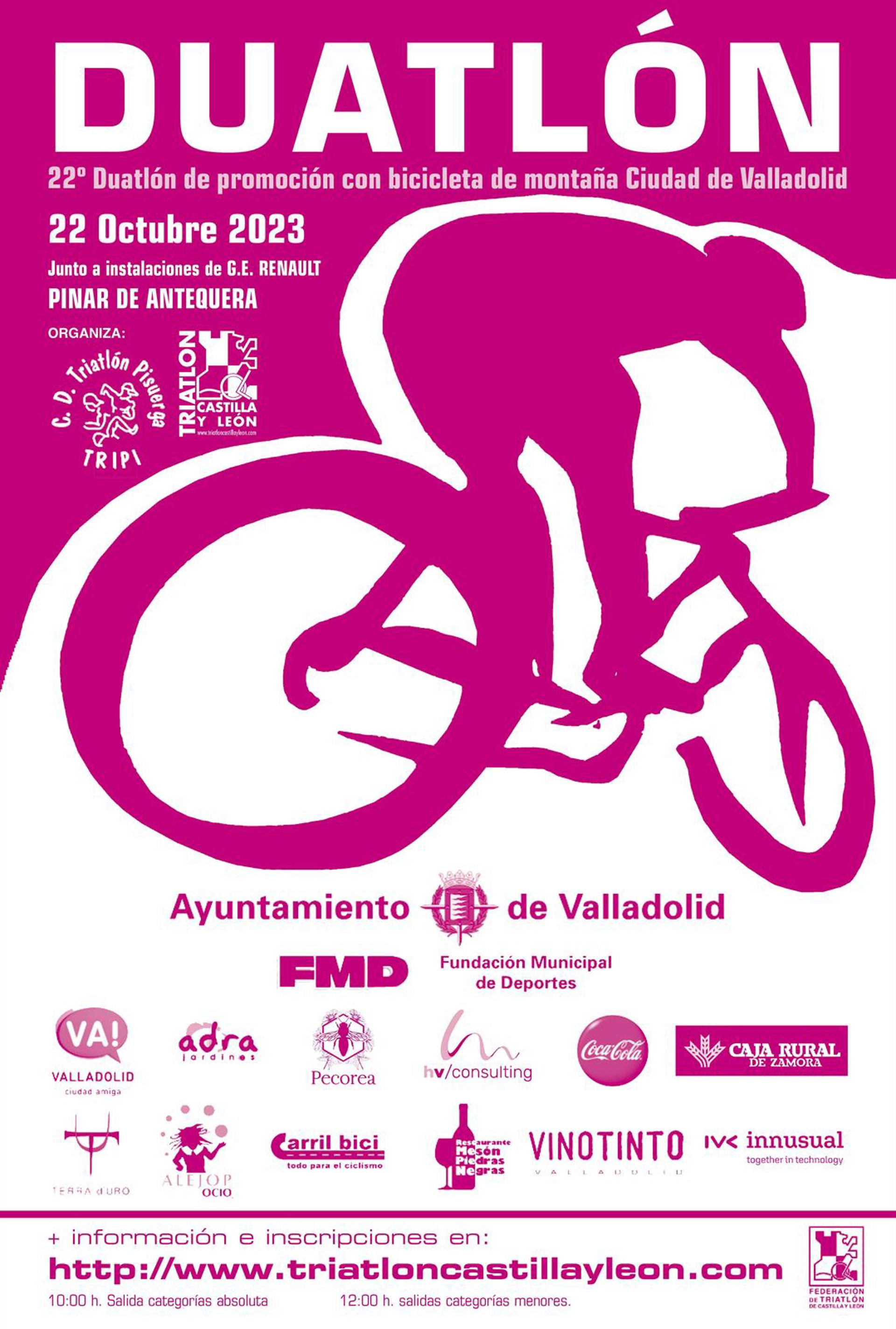 La XXII edición del Duatlón de Promoción con Bicicleta de Montaña Ciudad de Valladolid contará este domingo, 22 de octubre, con un total de 230 participantes que se darán cita en la parte trasera de las instalaciones de Renault para comenzar las competiciones a las 10.00 horas.