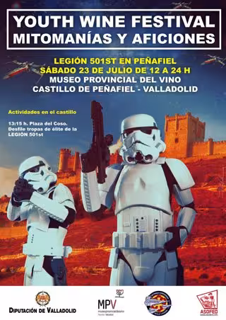 El sábado 23 de julio comenzará con la 'Jornada Star Wars', a las 12.30 horas, y La Legión 501, un desfile que se desarrollará en las propias instalaciones del Museo Provincial del Vino, Castillo de Peñafiel y la plaza del Coso de Peñafiel, con participantes de diferentes puntos de la geografía española y fin solidario. En la franja de mañana se desarrollará también el concierto del grupo peñafielense 'Little Indian Rabbits'.