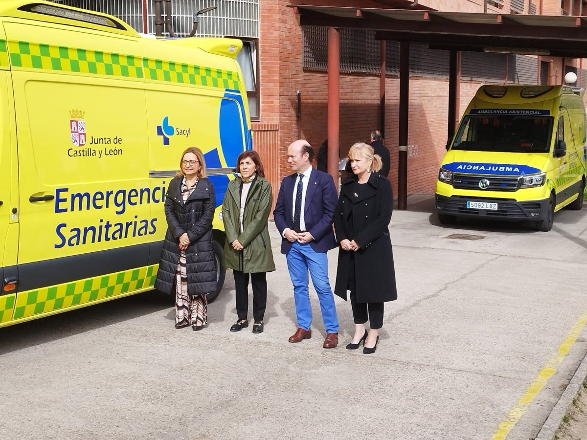 El viceconsejero de Sanidad, Jesús García-Cruces, junto a las autoridades locales, durante la presentación de la nueva flota. JCYL - JCYL