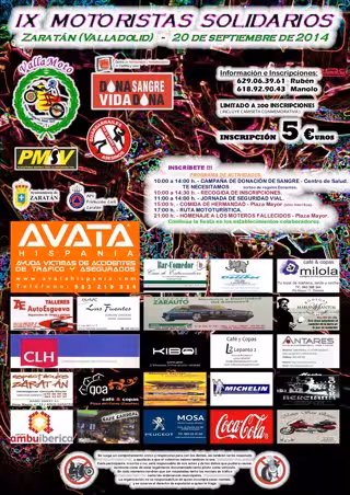 La localidad vallisoletana de Zaratán acogerá el próximo sábado, 20 de septiembre, 'Motoristas Solidarios', cita que alcanza su novena edición y se centra en la donación altruista de sangre por parte de aficionados a las motocicletas así como en la educación y la seguridad vial.