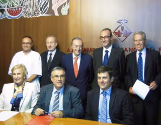 La firma del convenio la presidió el alcalde de Vilafranca, Pere Regull, y reunió al resto de patronos fundacionales: el presidente de la DO Catalunya, Xavier Pié; el presidente de la DO Penedès, Josep Maria Albet; el presidente de la DO Cava, Gustau Garcia Guillamet; el presidente de la Fundación Privada Caixa Penedès, Martí Solé Bordes; la presidenta de Codorníu, Maria del Mar Raventós; el director de comunicación de Freixenet, Pere Bonet, y el presidente de Bodegas Torres, Miquel Agustí Torres --la Generalitat también formará parte de la fundación--.