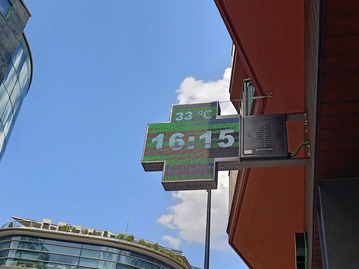 Un termómetro marca 33 grados este lunes al mediodía en Andorra la Vella - MERITXELL PRAT - EUROPA PRESS