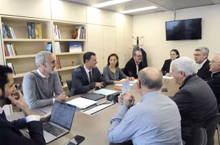El secretario de Estado de Economía, ric Bartolomé, y el ministro de Presidencia, Economía y Empresa, Jordi Gallardo, reunidos con distintos representantes de la patronal andorrana - SFG