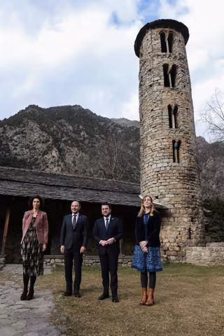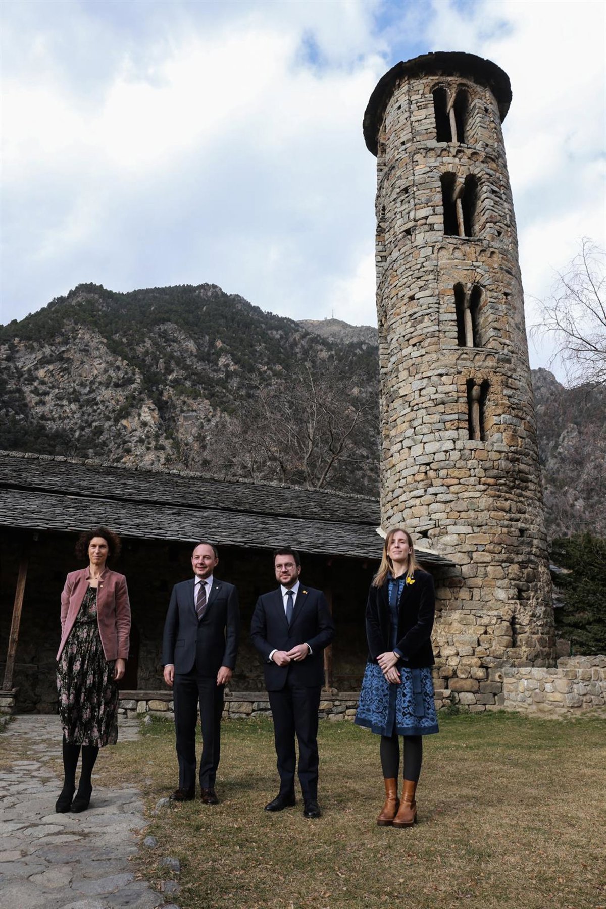 El presidente de la Generalitat, Pere Aragons, y el jefe de Gobierno de Andorra, Xavier Espot, han visitado la iglesia de Santa Coloma y el Espai Columba tras la reunión que ambos han mantenido este viernes en el país andorrano.