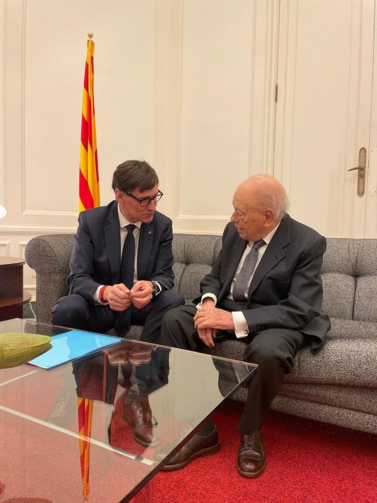 El presidente de la Generalitat, Salvador Illa, y el expresidente Jordi Pujol, reunidos en el Palau de Pedralbes - GOVERN