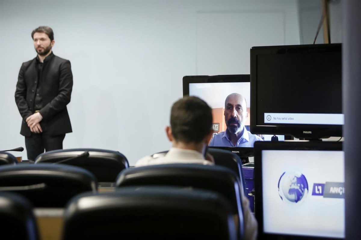 La sala de prensa durante la comparecencia del ministro de Salud aislado en su casa. - SFG