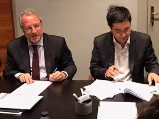 El director general de Fira de Barcelona, Constantí Serallonga, y el alcalde accidental y presidente del Institut Municipal d'Informàtica (IMI), Gerardo Pisarello, han firmado este miércoles un acuerdo para colaborar en la atracción de empresas y en la proyección internacional de proyectos tecnológicos, de economía digital y el ecosistema innovador de la ciudad.