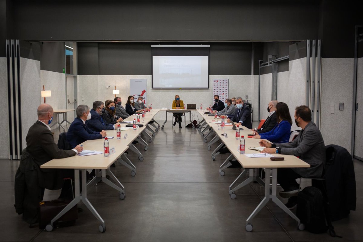 El teniente alcalde de Barcelona, Jaume Collboni (4d), durante una reunión en la segunda jornada de Barcelona reAct, a 14 de abril de 2021, en Barcelona, Catalunya, (España). Las jornadas de trabajo de Barcelona reAct tienen como objetivo relanzar l - David Zorrakino - Europa Press