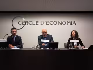 El acto ha sido conducido por el presidente de Abertis, Salvador Alemany, como expresidente del Círculo de Economía --el presidente, Antón Costas, no podía acudir-- y exvicepresidente del FC Barcelona.