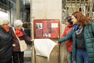 La concejal del distrito de Ciutat Vella, Gala Pin, y la concejal de Feminismos y LGTBI de Barcelona, Laura Pérez, han descubierto este jueves un atril en memoria del bar-biblioteca feminista i ediciones de las mujeres laSal.