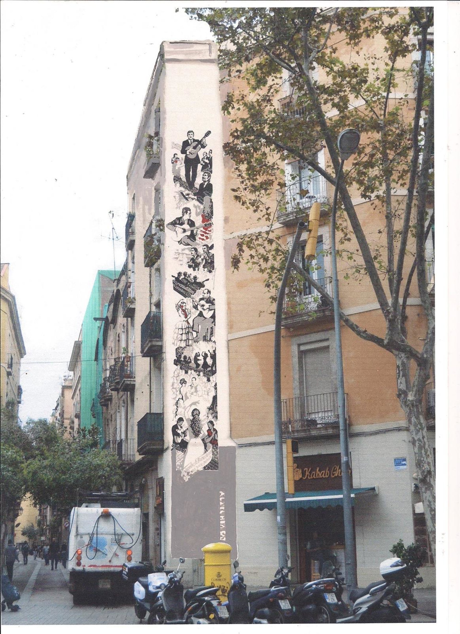 El Ayuntamiento de Barcelona ha iniciado las actuaciones para homenajear a la rumba catalana a través de la instalación de esculturas en dos paredes medianeras ubicadas en los números 6 y 57 de la calle de la Cera, considerado el origen histórico de este género musical en el barrio del Raval.