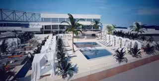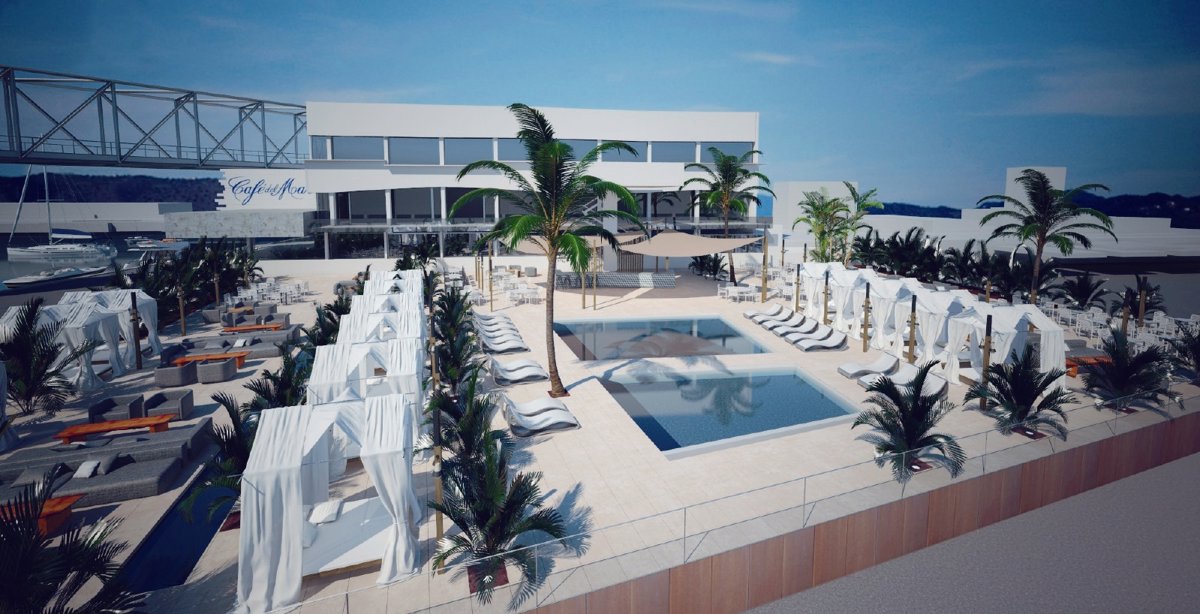 El nuevo Café del Mar contará con una zona exterior de 1.500 metros cuadrados con piscina, y a este espacio exterior se accederá desde el edificio principal de cuatro plantas.