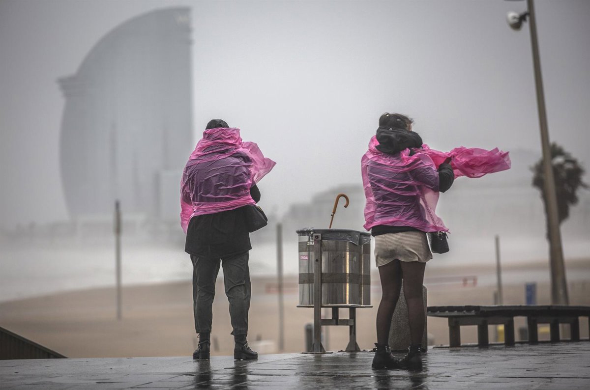 Dos mujeres en el paseo marítimo de la playa de la Barceloneta (Barcelona), durante la borrasca 'Gloria, a 21 de enero de 2020. - David Zorrakino - Europa Press