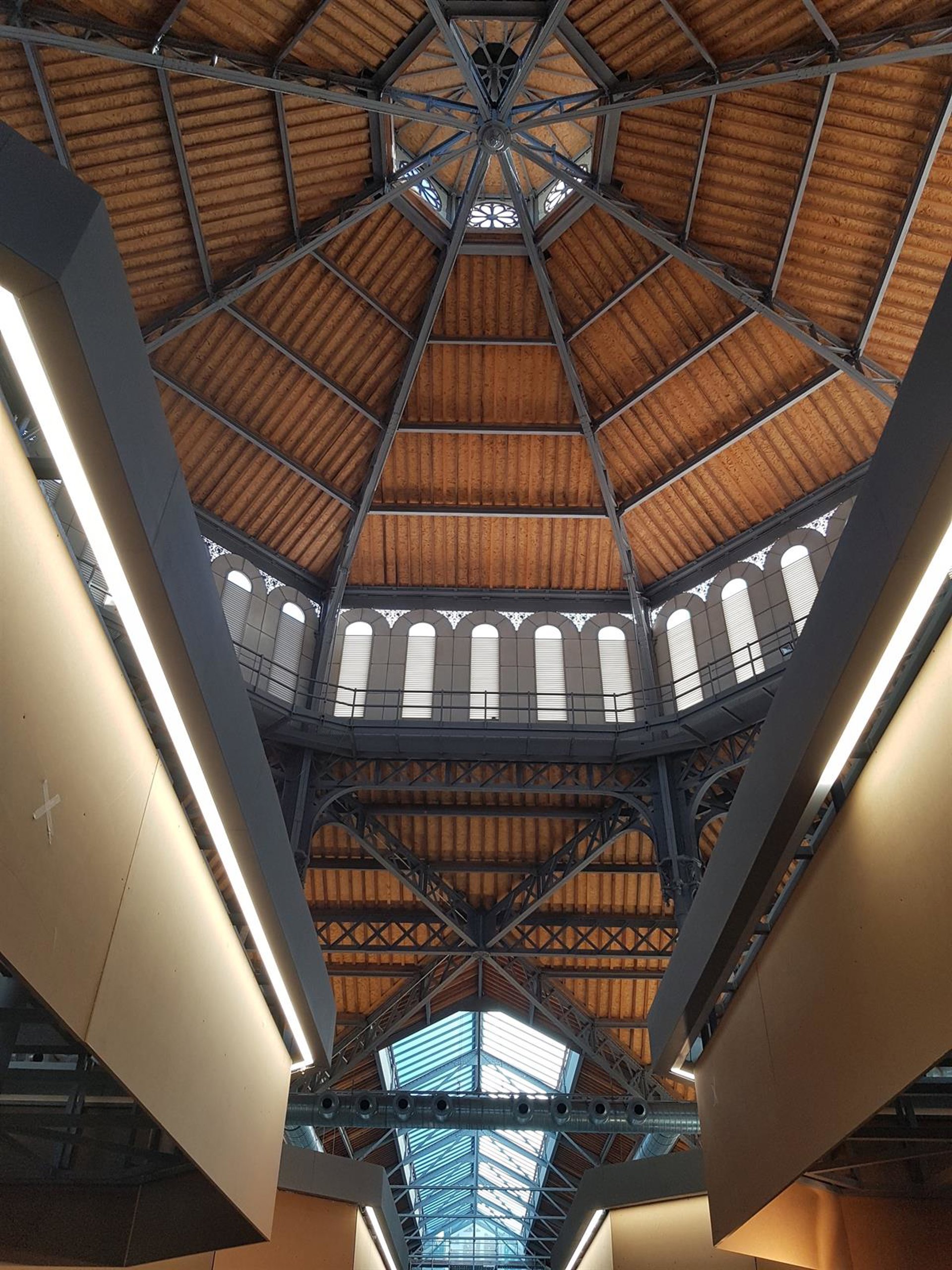 La superficie total construida del mercado es de 53.388 metros cuadrados, distribuidos en cinco niveles, cuatro de los cuales han sido excavados para poder dotarlo de otros servicios, como un almacén, aparcamiento, un espacio vecinal, un establecimiento de autoservicio --de la cadena Lidl-- y otro de productos no alimentarios, para el que todavía se están presentando ofertas.