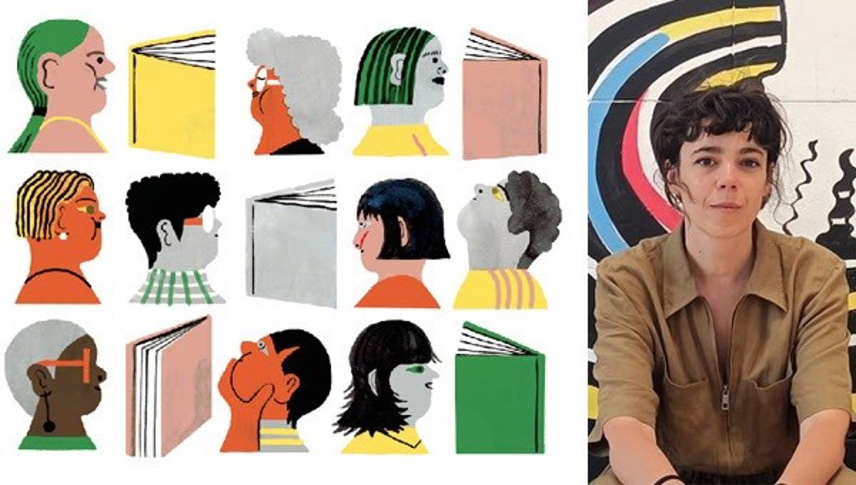 "Con mi ilustración he querido mostrar, mediante una composición rítmica y colorida, un conjunto diverso de personajes que se encuentran, dialogan y descubren conexiones a través de los libros", ha explicado la autora.