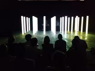 El show juega con la percepción de la realidad y el espacio a través de los árboles digitales luminosos, que se fusionan con sonidos oníricos de electronica oscura y proyectan efectos visuales hipnóticos.