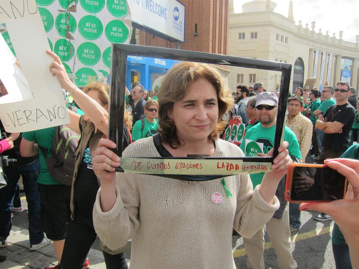 La portavoz de la PAH, Ada Colau, en declaraciones a los periodistas, ha explicado que con esta acción en la que todos los participantes llevaban un marco de cartón simulando una pantalla de plasma en alusión a las ruedas de prensa del presidente, ha informado de que se trata de la "clausura a la campaña de escraches realizada durante la tramitación de la Iniciativa Legislativa Popular (ILP)".