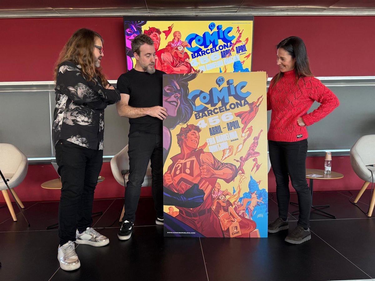 La directora general de Ficomic, Meritxell Puig, y el asesor del 43 Comic Barcelona, Borja Crespo, han presentado este jueves el cartel del dibujante de Marvel Pepe Larraz para esta edición, que se celebrará del 4 al 6 de abril en el recinto de Montjuïc de Fira de Barcelona.