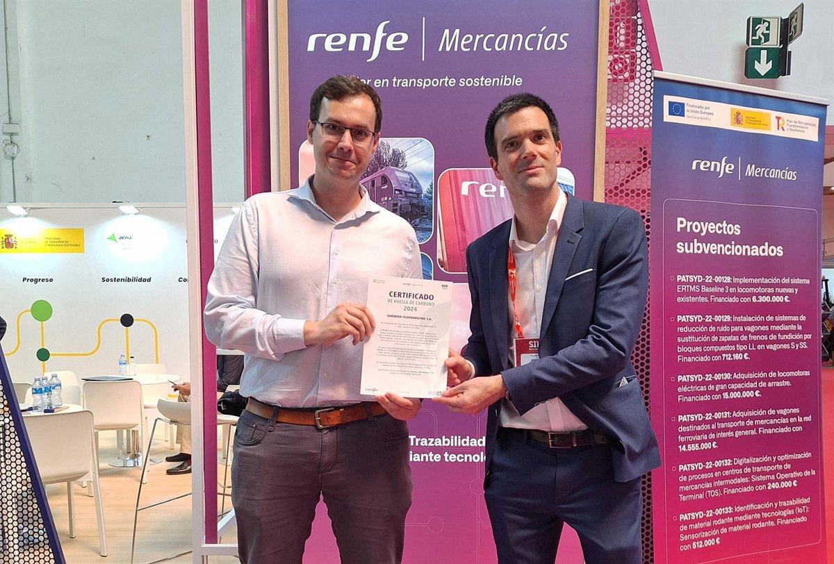 Renfe Mercancías ha entregado el Certificado de Huella de Carbono a Harinera Vilafranquina, Railsider, Pecovasa y APM Terminals Spain Railway, en el marco del SIL 2025, informa en sendos comunidados este miércoles.
