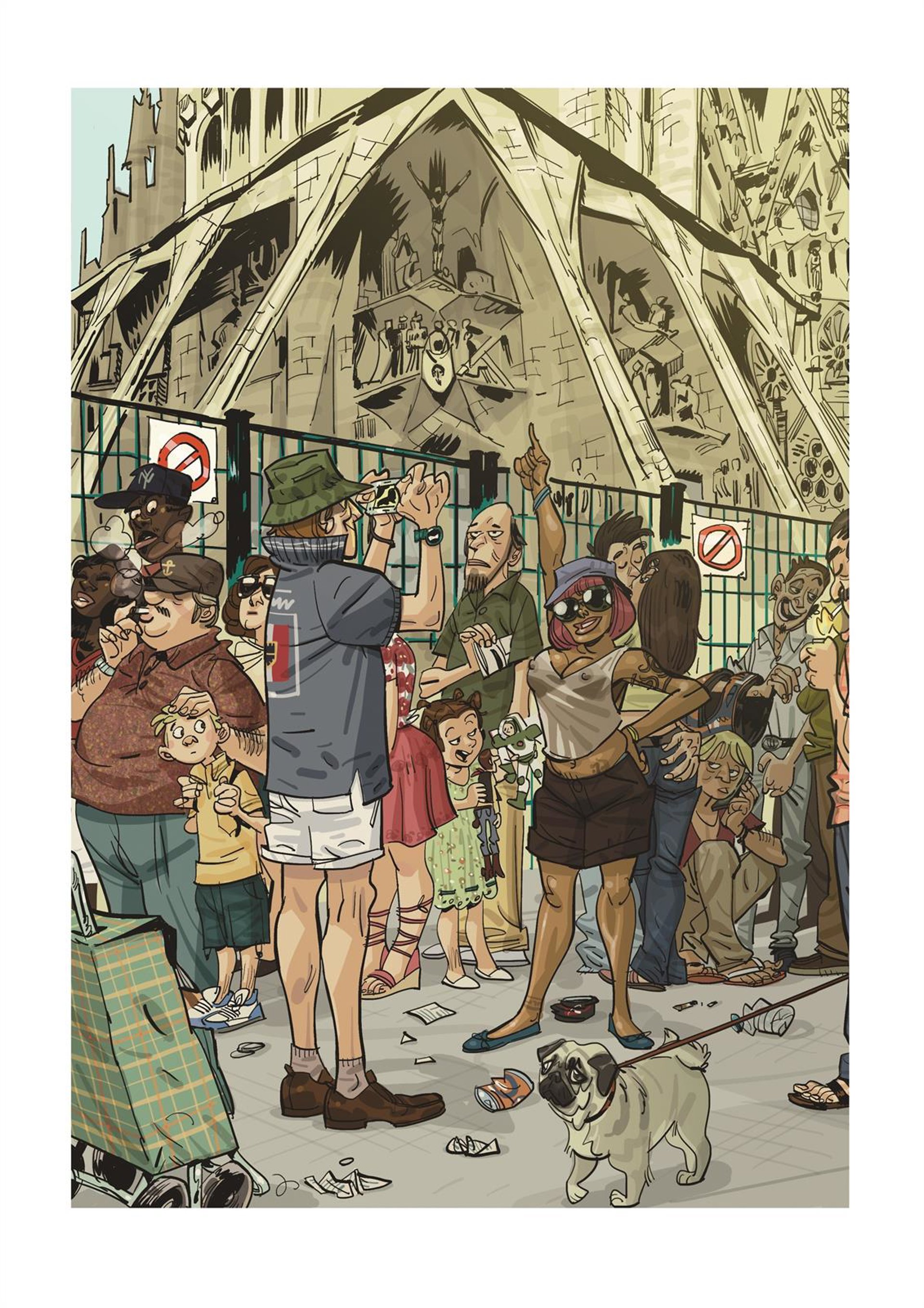 Jesús Alonso Iglesias ha confesado que odia dibujar edificios, pero que "Gaudí es otra cosa porque no son edificios normales", y ha detallado sus dificultades en trasladar las ondulaciones gaudinianas al papel, dado además que el autor realizó sus dibujos inspirándose en imágenes de Google.