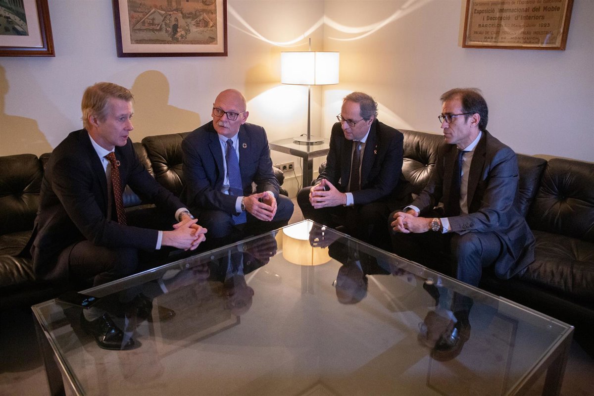 El presidente de la Generalitat, Quim Torra, se ha reunido este jueves con el consejero delegado de la GSMA, organizadora del Mobile World Congress (MWC), John Hoffman, y con el presidente del consejo de administración de Fira de Barcelona, Pau Relat, para valorar la cancelación del congreso.