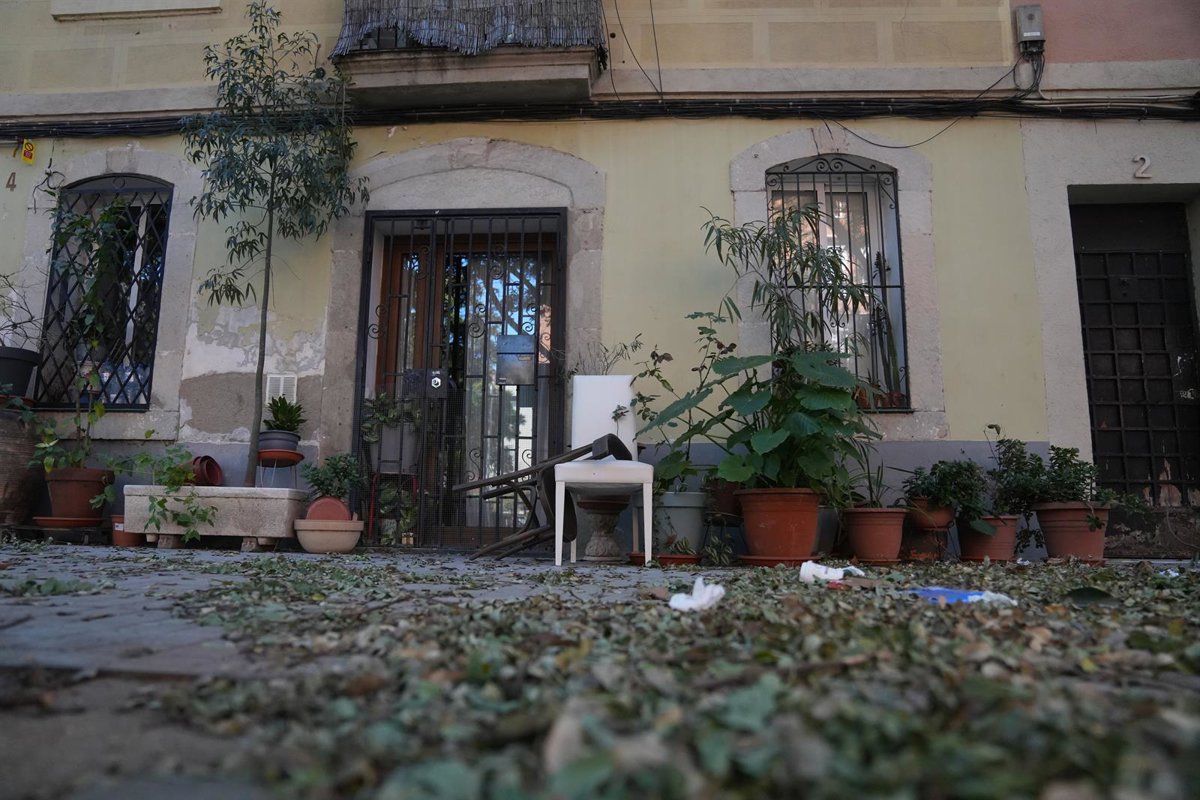 Montones de hojas y basura movidas por el viento, a 12 de febrero de 2026, en Barcelona, Catalunya (España) - David Zorrakino - Europa Press