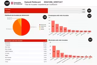 El teléfono de emergencias 112 ha recibido durante el presente episodio de fuertes vientos 1.593 llamadas en Catalunya desde este sábado hasta aproximadamente las 10 horas de este domingo, correspondientes a 1.015 incidentes, según ha informado el servicio en un mensaje en X recogido por Europa Press.
