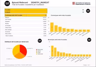 En un mensaje en 'X' recogido por Europa Press, el 112 ha explicado que las comarcas con más llamadas son Noguera (13), Baix Peneds (9) y Bergued (7).