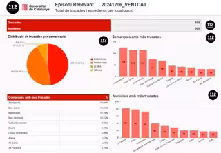 Llamadas e incidentes recibidas por el 112 por el episodio de viento en Catalunya - GENERALITAT DE CATALUNYA