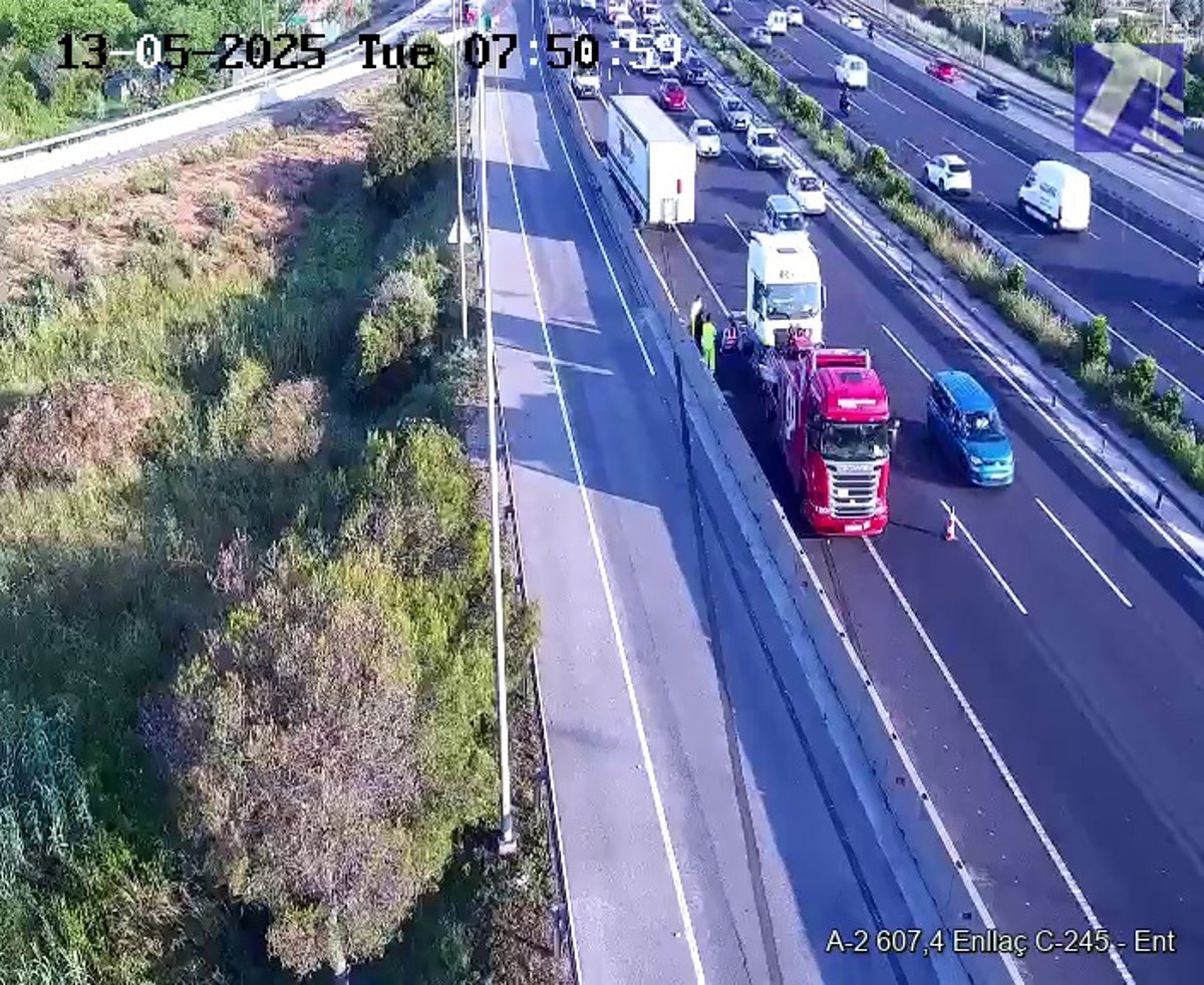 La A-2 entre Sant Joan Despí y Sant Andreu de la Barca (Barcelona) tiene 13,5 kilómetros de colas y un carril cortado este martes por la mañana.