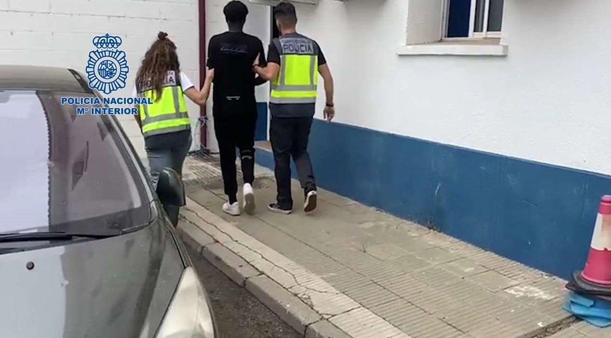 Agentes de la Policía Nacional junto a uno de los detenidos por presuntas estafas - POLICÍA NACIONAL