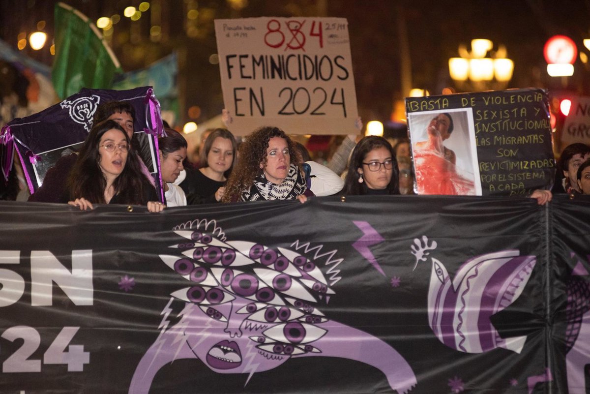 Archivo - Varias personas durante la manifestación por el 25N de la plataforma 'Novembre Feminista', en el Paseo de Gràcia con Diagonal en 2024. - Alberto Paredes - Europa Press - Archivo