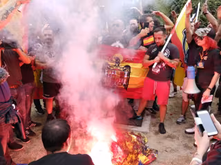 También en declaraciones a los periodistas, Andrino (La Falange) ha acusado al Estado de abandonar sus funciones en Catalunya y ha advertido de que "plantarán cara, cueste lo que cueste", al independentismo.