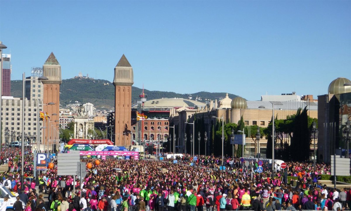 Unas 15.000 mujeres han participado este domingo en la IX 'Cursa de la Dona' que organiza anualmente la Asociación Española contra el Cáncer (AECC) en Barcelona para concienciar sobre el cáncer de mama.