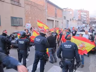 Una veintena de personas han acudido este miércoles a un mitin de la campaña electoral de ERC para tratar de boicotearlo y, exhibiendo banderas españolas, han coreado consignas como 'Yo soy español' y 'Separatistas, terroristas'.
