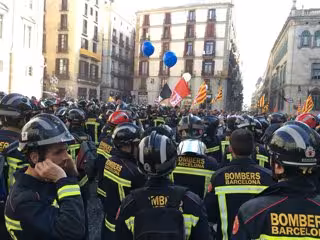Cerca de 200 Bomberos de Barcelona se manifiestan este viernes en la plaza Sant Jaume, frente al Ayuntamiento, para reclamar un "convenio digno", en una movilización convocada por una plataforma conjunta formada por los sindicatos CC.OO., UGT y Sapol.