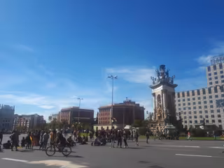 Unos 200 estudiantes se han concentrado desde las 14 horas en la plaza Espanya de Barcelona y han cortado el tráfico en ese punto en protestas contra la sentencia condenatoria del 1-O.