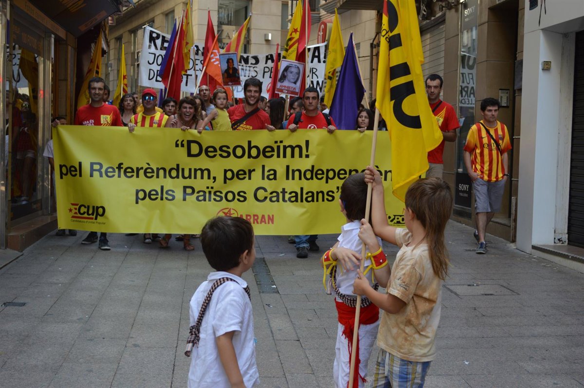'Independencia y socialismo' ha sido una de las consignas de la manifestación, que ha comenzado en la plaza de la Paeria y ha finalizado en la avenida Blondel.