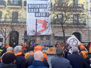 A gritos de 'Solidaritat amb la Casa Orsola' y pancartas y banderas de Marea Pensionistes, se unido a algunos representantes del Sindicat de Llogateres de Catalunya; su portavoz, Enric Aragonès, ha lamentado que "la vivienda es el principal factor de pobreza de la sociedad" y ha celebrado que los estudiantes y los pensionistas fueran los primeros en convocar concentraciones cuando se anunció el desahucio.