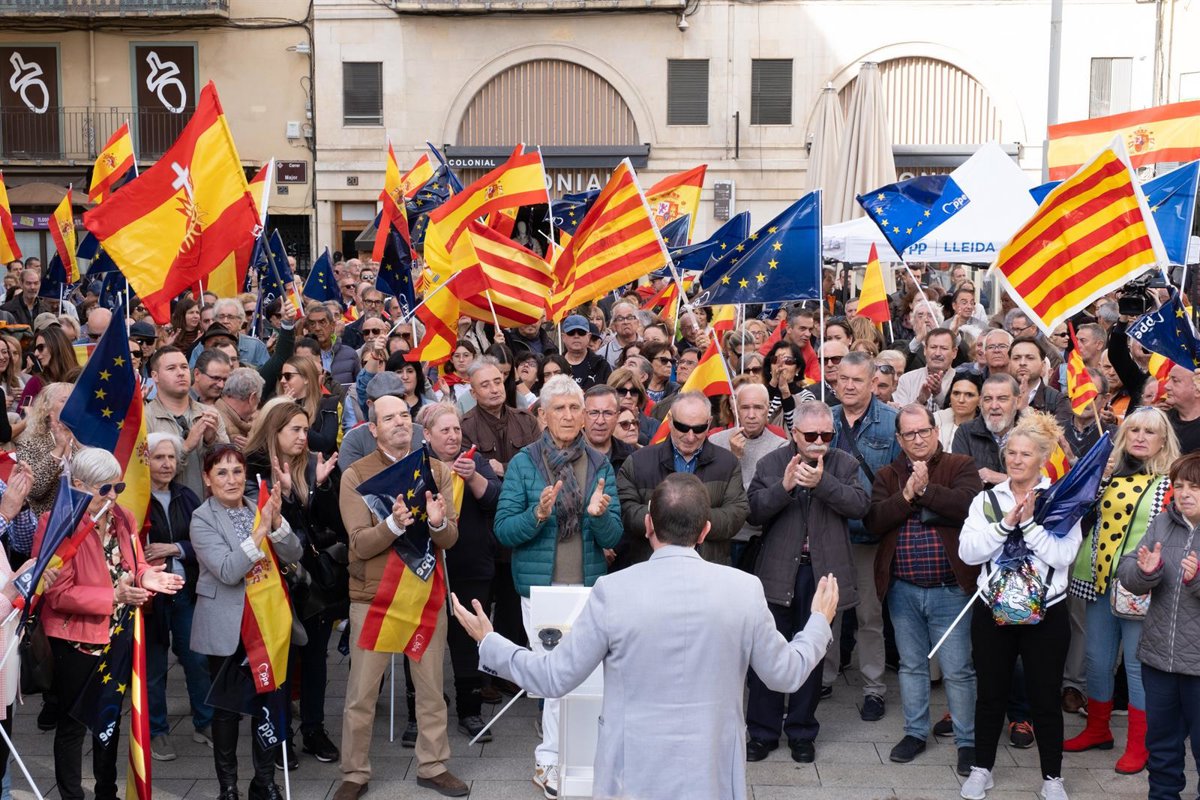 Unas 200 personas se han concentrado este domingo a mediodía en Lleida contra la amnistía, durante las concentraciones convocadas por el PP en las capitales provinciales.