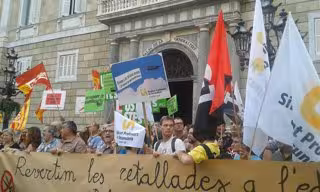 Cerca de 200 personas se han concentrado la tarde de este martes en la plaza Sant Jaume de Barcelona para reclamar "revertir los recortes" y pedir al Govern que fije la educación pública como una de las prioridades en sus Presupuestos.