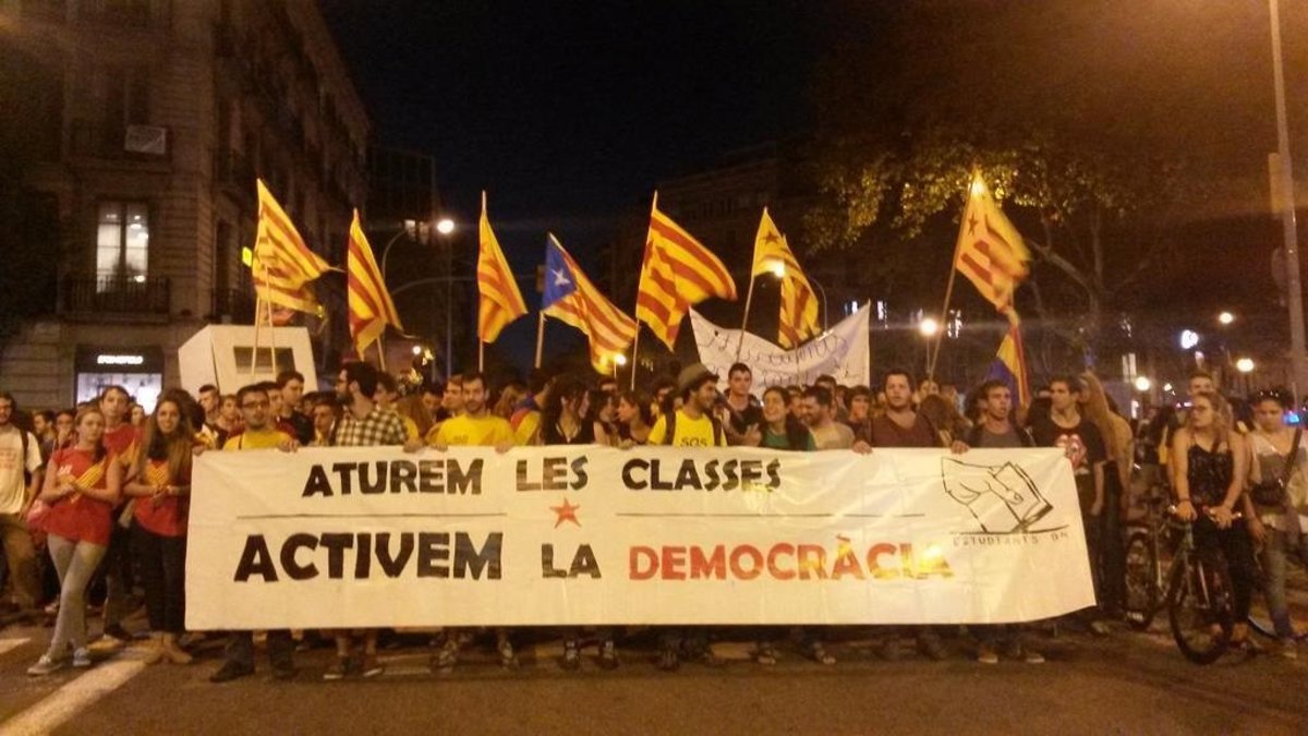 La marcha ha sido convocada por Estudiants9N, una plataforma que aglutina a diversos sindicatos estudiantiles, a las 19.00 horas en plaza Universitat y los manifestantes han marchado con gritos a favor de la independencia de Catalunya por Via Laietana hasta llegar a plaza Sant Jaume, donde a las 21.00 horas se ha disuelto la protesta.