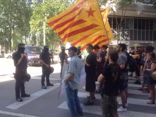 Detrás de una pancarta con el lema de 'Per la República Catalana de la classe treballadora', los activistas han tratado de entregar al Rey un manifiesto en el que dicen que no es bienvenido y que "Girona es un lugar libre de monarquía", han explicado los mismos jóvenes.