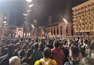 Unas 25.000 personas, según fuentes municipales, se han manifestado este lunes por la noche y bajo una leve lluvia ante la Subdelegación del Gobierno en Girona en contra de la sentencia del Tribunal Supremo sobre el 1-O.